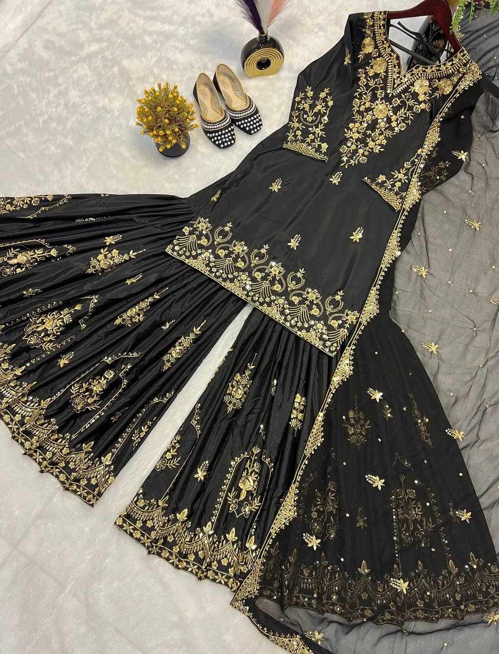Add a touch of dramatic elegance to your ethnic collection with this striking black and maroon Anarkali dress. Featuring a beautifully detailed all-over floral and bird-inspired print, this outfit blends earthy tones with intricate patterns for a rich, handcrafted look.